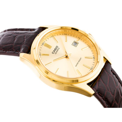 Casio Watches Brown Leather Strap Gold Dial Quartz Watch MTP-1183Q-9ADF